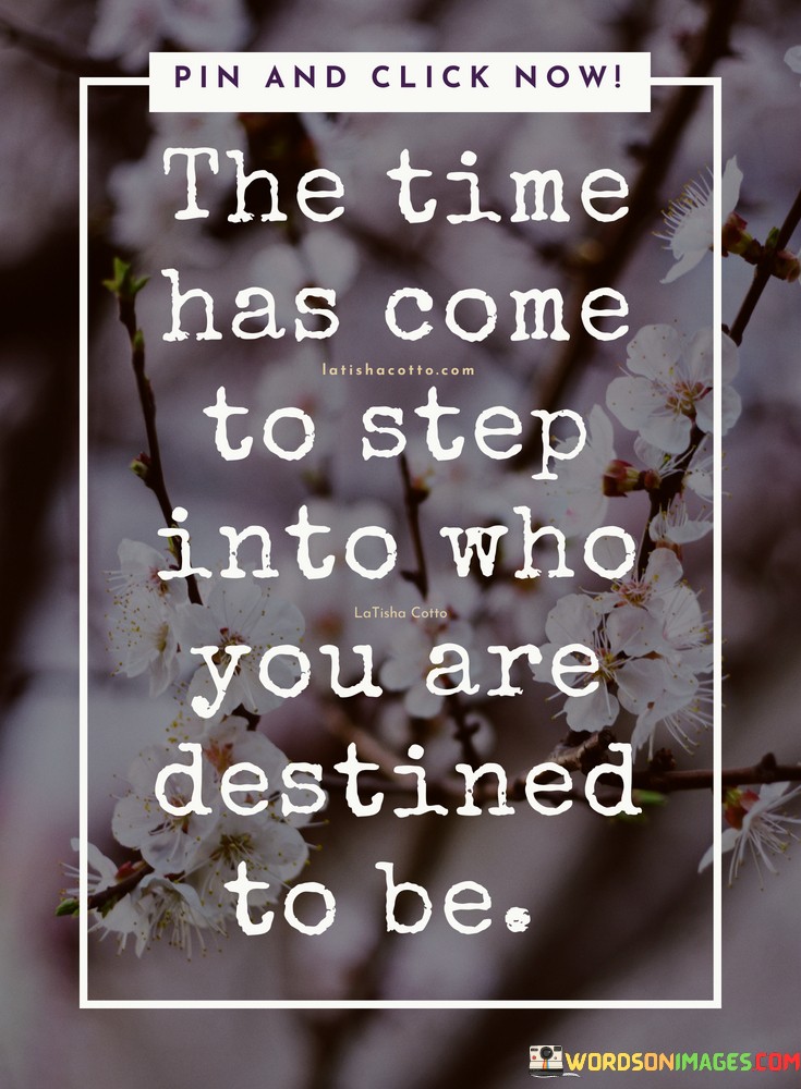 In the third paragraph, the quote inspires self-empowerment. By stepping into one's authentic self and embracing their destined identity, individuals can unlock their full potential and lead a fulfilling life. This quote encourages individuals to embrace their true selves and follow their destined path, inspiring personal growth, empowerment, and a sense of purpose in their journey.