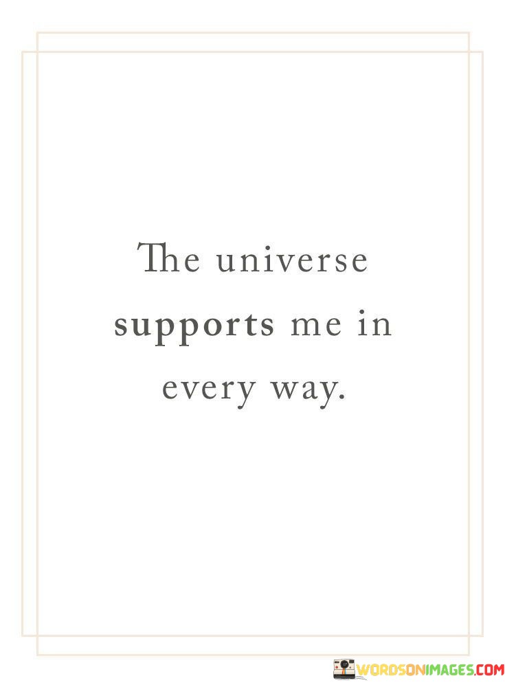 The statement promotes the idea of cultivating a positive mindset and embracing the universe's support. It implies that one's perception can influence experiences and outcomes. By recognizing the potential for universal alignment, individuals can cultivate a mindset that attracts positivity and embraces life's opportunities.