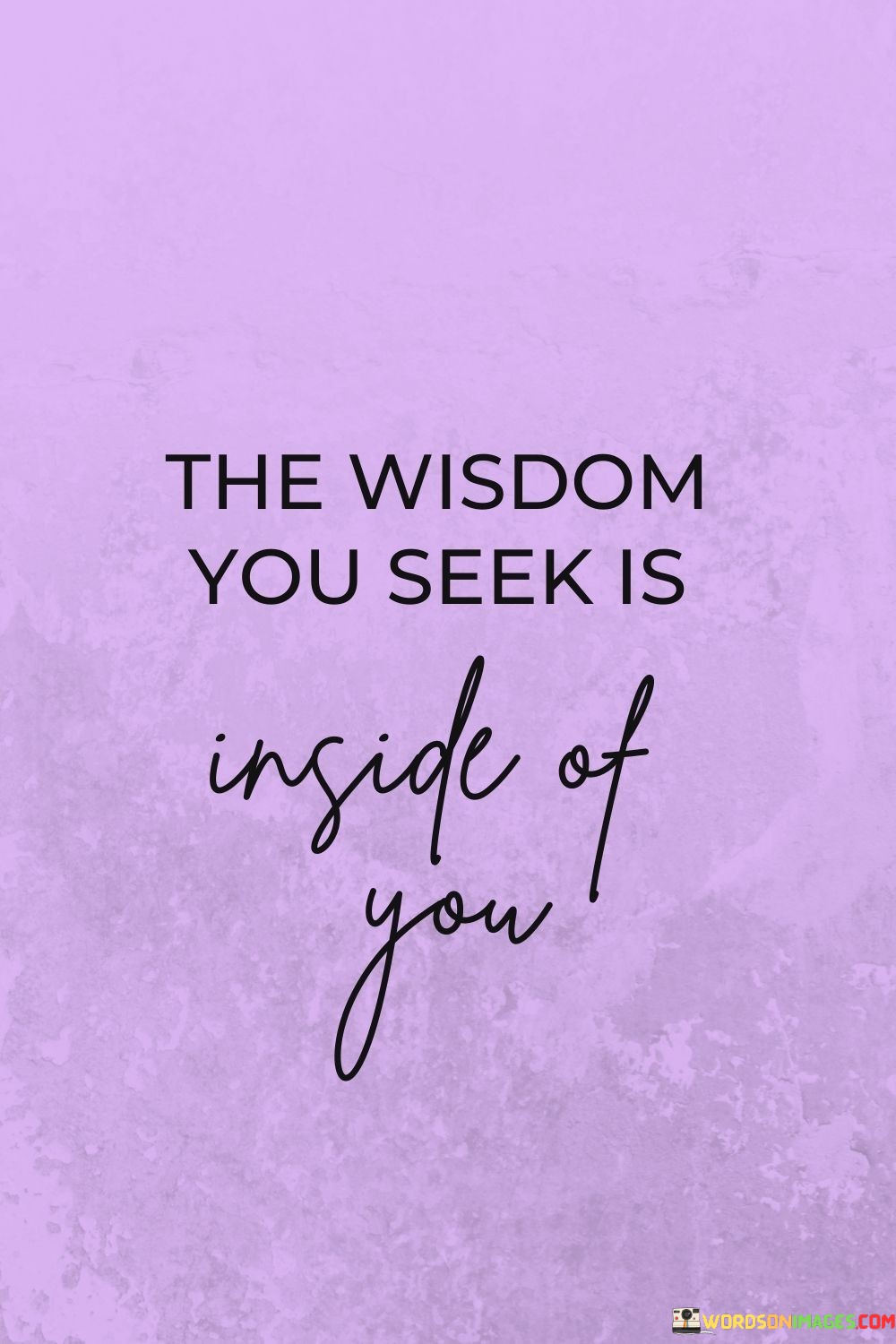The quote also highlights the importance of self-awareness and self-acceptance. By acknowledging and embracing our inner wisdom, we can make informed decisions that align with our true selves. This quote serves as a powerful reminder of the significance of inner growth and the journey of self-discovery as a means of unlocking the wisdom we hold within.