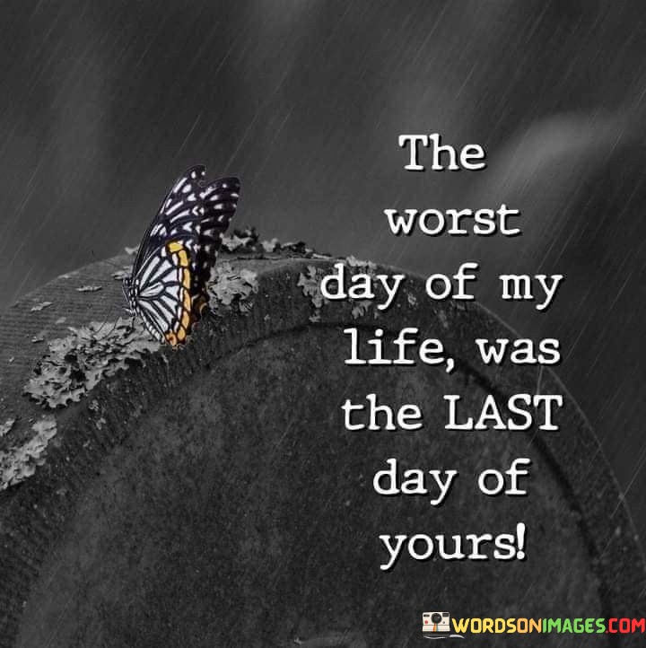 The quote expresses profound grief and loss. "Worst day of my life" signifies deep sorrow. "Last day of yours" alludes to a loved one's passing. The quote conveys the heart-wrenching experience of losing someone dear.