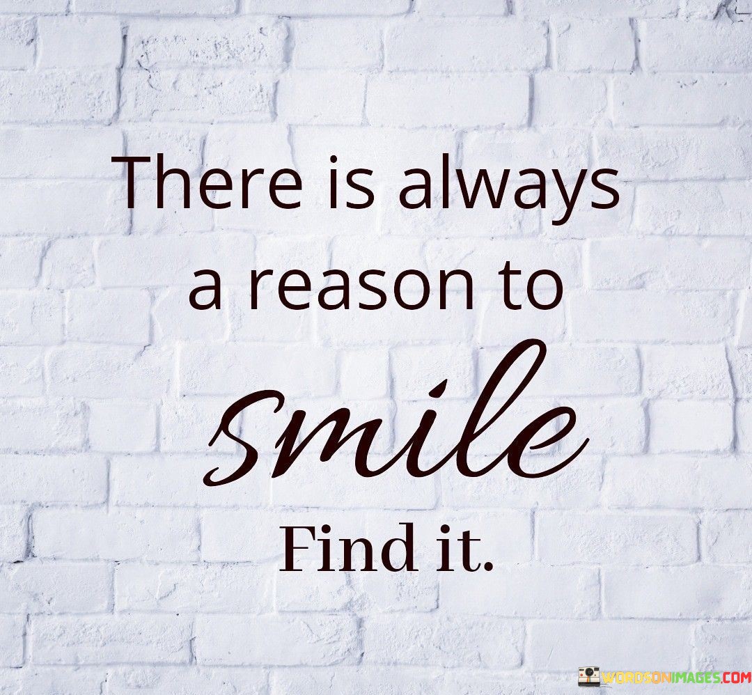 In a world where negativity can be pervasive, this quote offers an uplifting perspective. It encourages individuals to shift their focus from challenges to sources of happiness, fostering a mindset that appreciates the beauty and goodness that exist in everyday life. By actively seeking reasons to smile, individuals can cultivate a more optimistic and fulfilling outlook.