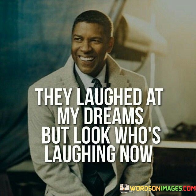 The quote addresses overcoming skepticism and achieving success. "They laughed at my dreams" conveys that others dismissed or mocked the speaker's aspirations.