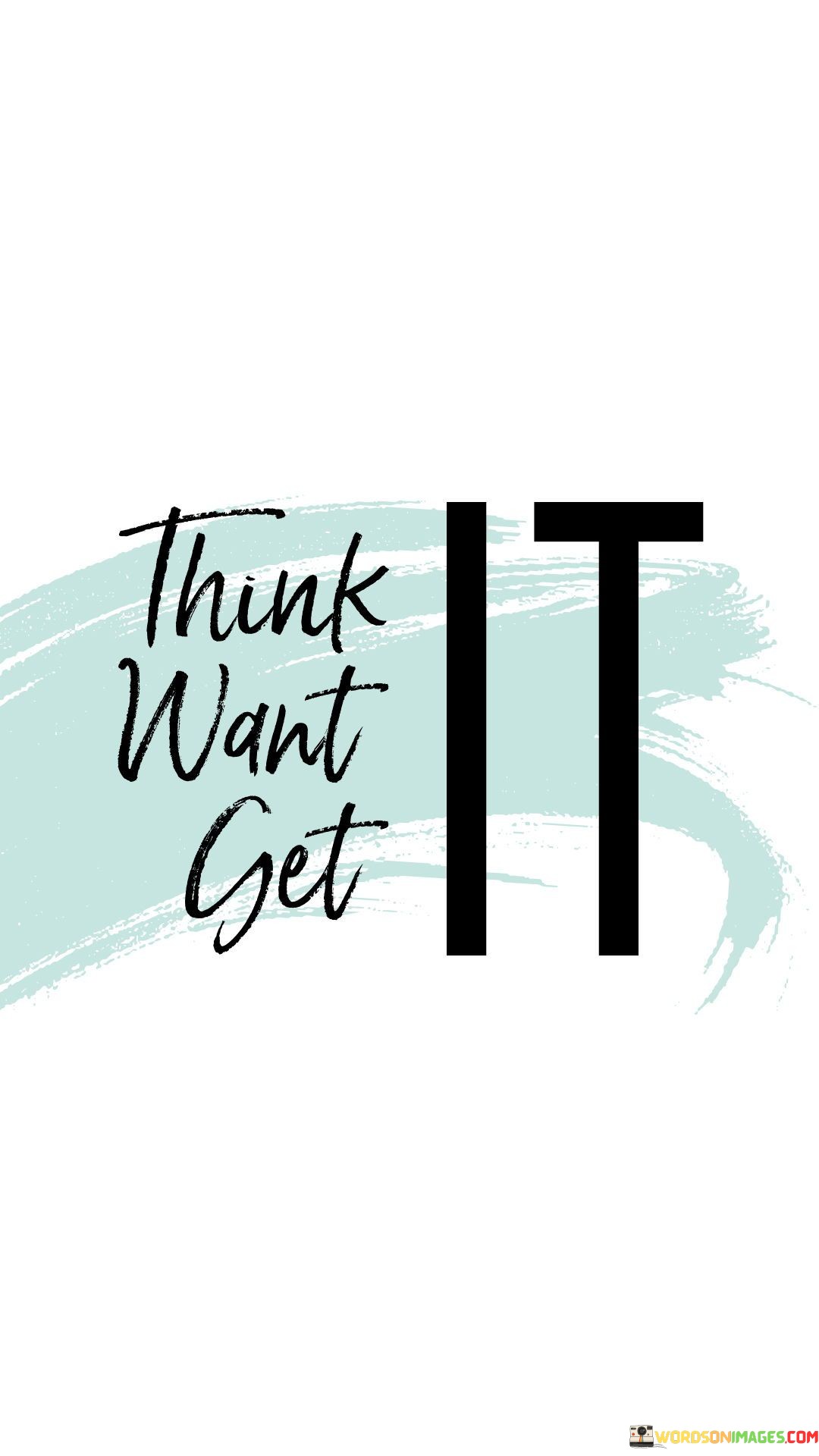 "Think Want Get It" encapsulates the idea that our thoughts drive our actions and outcomes. It implies that first, we must envision our desires and believe in their attainability. This mental attitude then propels us to take actions aligned with our goals, ultimately leading to the realization of what we initially envisioned.