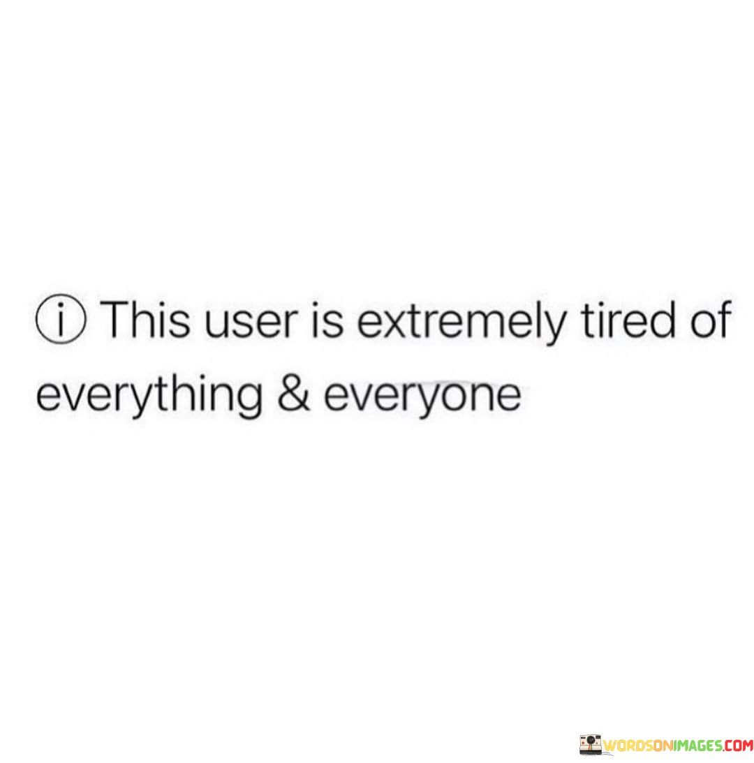 The quote expresses profound weariness. "Extremely tired of everything and everyone" conveys emotional exhaustion. The quote reflects the fatigue from interactions and experiences, conveying a sense of overwhelmed detachment.