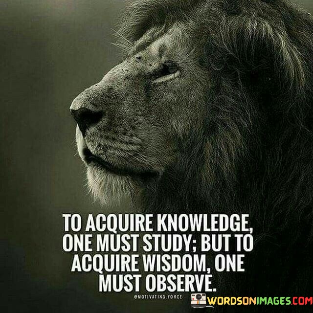 In essence, the quote underscores that while knowledge is acquired through active learning, wisdom is developed by being attuned to the world around us. It encourages a holistic approach to personal growth, emphasizing the importance of both rigorous study and mindful observation for a well-rounded and enlightened perspective.