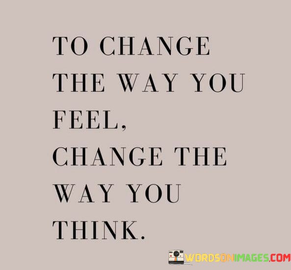 "Change the way you think": Here, the quote presents a solution by highlighting the importance of our thought processes. It suggests that by changing our thought patterns, we can effectively transform our emotional states.