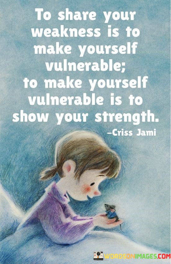 In essence, the quote conveys that displaying vulnerability isn't a sign of weakness, but rather a display of inner strength. It demonstrates our willingness to be genuine and authentic, ultimately fostering deeper connections and relationships with those around us.