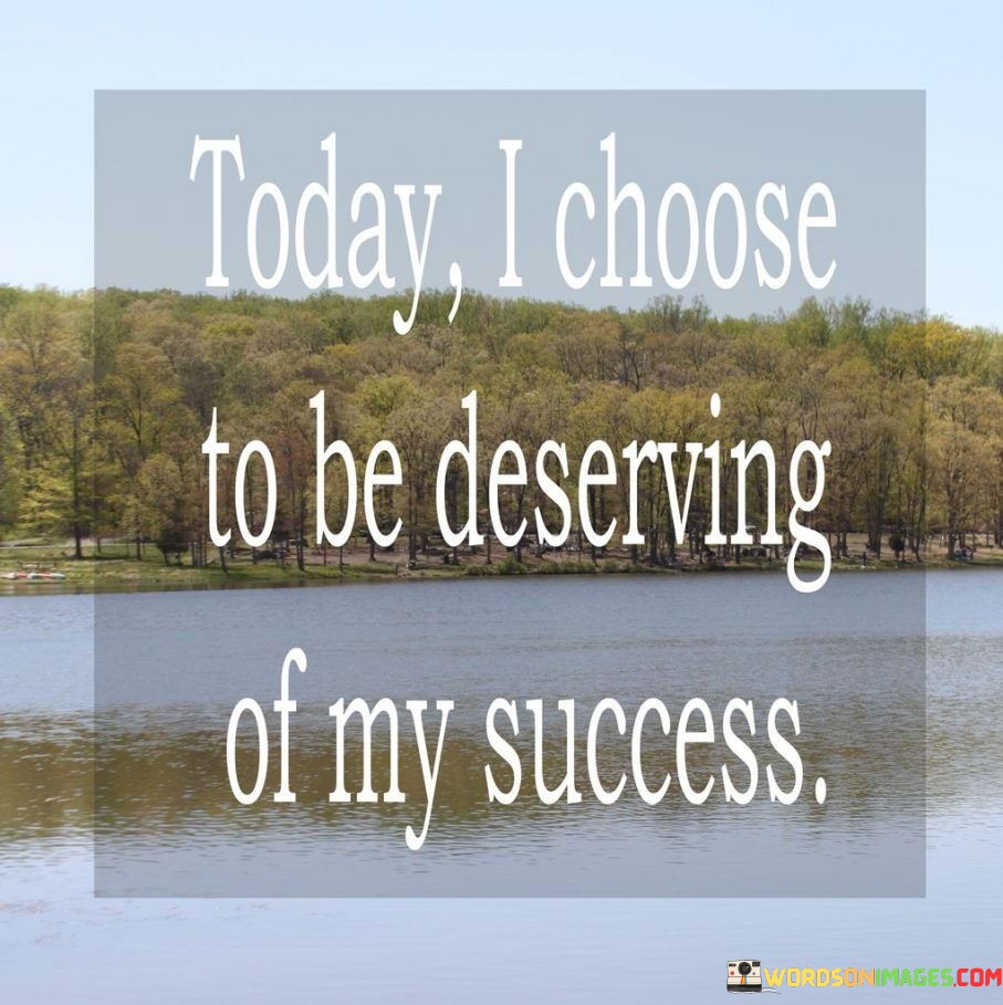 The statement encapsulates personal agency in achieving success. It implies that individuals have the power to determine their worthiness of the success they aspire to attain. By choosing to work towards becoming deserving, individuals commit to continuous improvement and self-development.