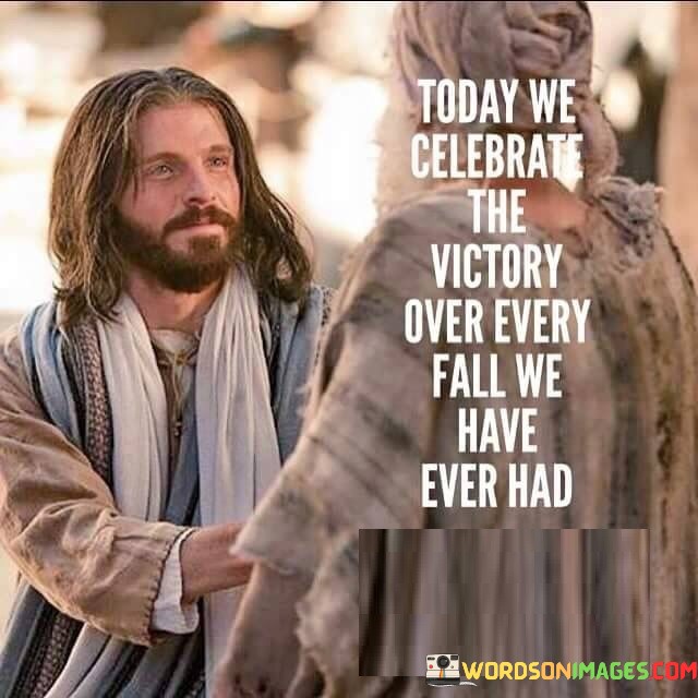 The quote "Today We Celebrate The Victory Over Every Fall we have ever had" is a powerful statement of resilience, growth, and triumph in the face of adversity.