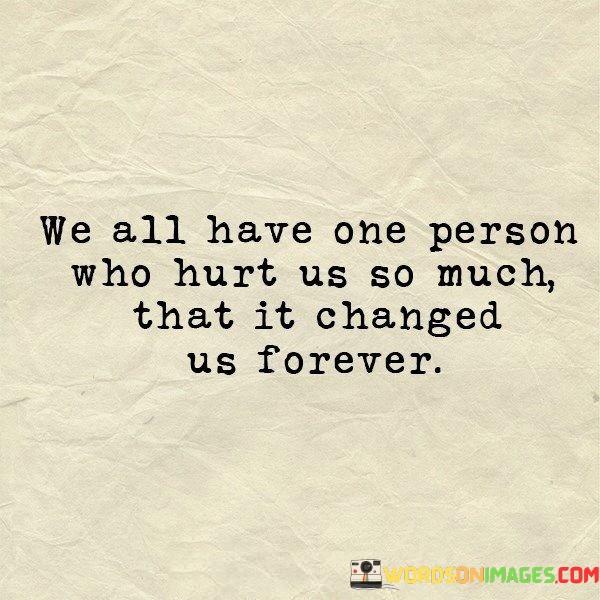 The quote reflects on the lasting impact of a hurtful relationship. "One person who hurts us so much" implies a significant emotional injury. "Changed us forever" signifies a profound alteration in one's emotional landscape. The quote conveys the transformative effect of a painful experience.