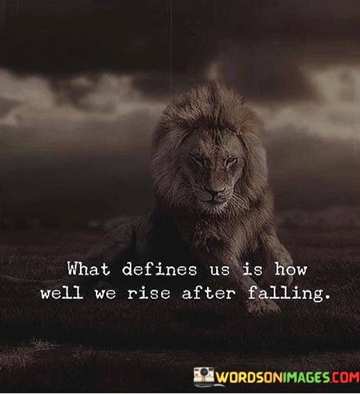 This quote emphasizes that our character and resilience are measured by how effectively we recover and stand strong after experiencing setbacks or failures. It suggests that the ability to rise after falling showcases our determination, adaptability, and strength of spirit.