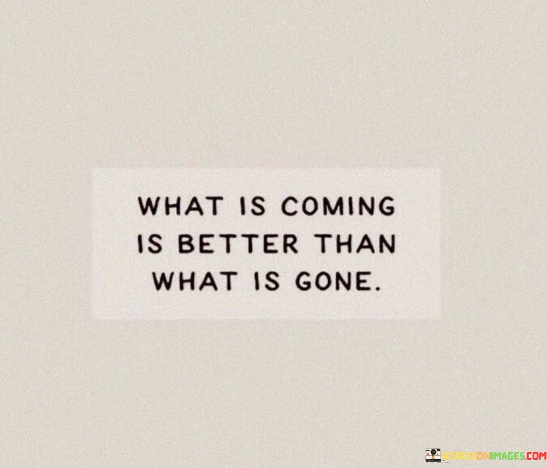 The quote "What Is Coming Is Better Than What Is Gone" carries a message of hope and optimism. It suggests that the future holds the promise of something better than what we have experienced in the past. This outlook encourages us to look forward with anticipation rather than dwelling on past hardships or losses.