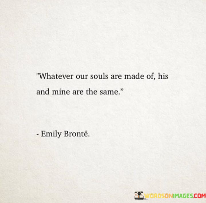 The quote "Whatever Our Souls Are Made Of His And Mine are the same" expresses a deep and profound connection between two people. It suggests that the essence of their souls, their true inner selves, are so alike that they share a unique and unbreakable bond.