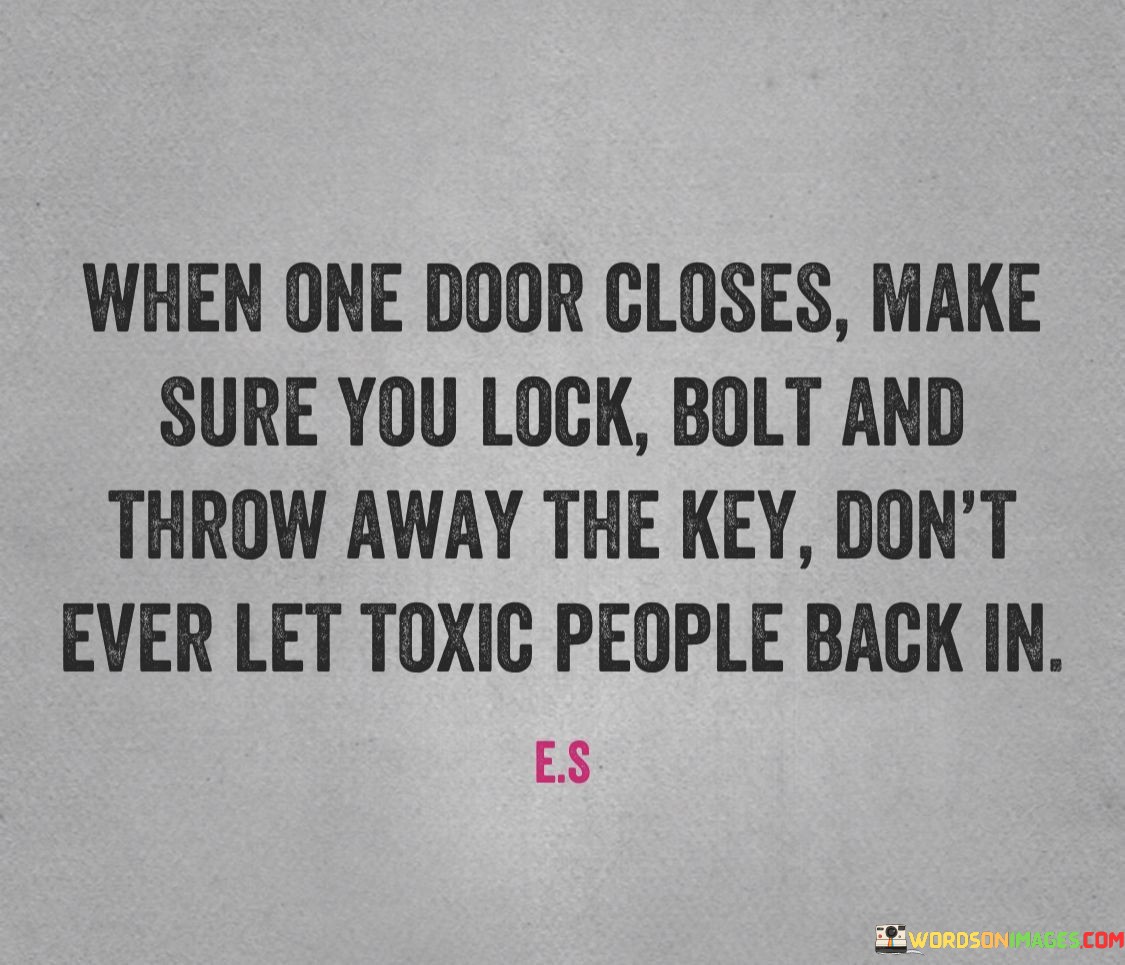 The quote advises against allowing toxic individuals back into one's life after a relationship has ended. It emphasizes the importance of protecting oneself from harmful influences.