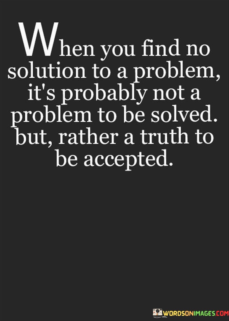 This quote reflects a perspective on problem-solving that emphasizes acceptance and understanding. It suggests that some challenges in life might not have immediate or straightforward solutions, and instead of continuously seeking answers, it's important to recognize the truth inherent in the situation.
