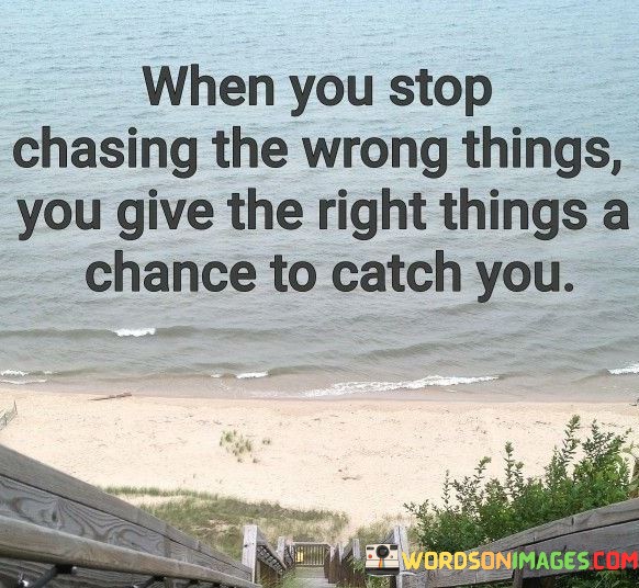 Openness to serendipity. The quote implies that when you release the attachment to chasing after the wrong goals, you become receptive to unexpected and positive outcomes that may come your way, reminding us of the power of surrender and being open to the flow of life.