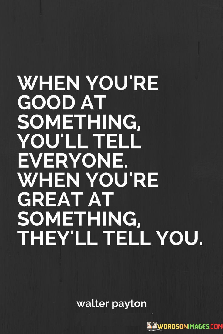 The quote underscores humility and recognition. It suggests that skill speaks for itself. Proficiency prompts self-promotion, while excellence garners recognition from others. The quote highlights the value of allowing accomplishments to shine and being acknowledged for greatness without self-aggrandizement.