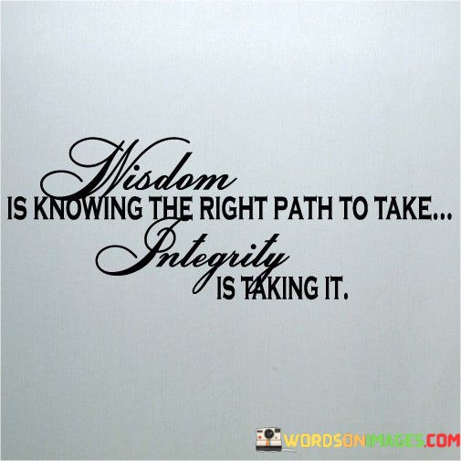 In the first paragraph, the quote introduces the concept of wisdom as the ability to discern the right path or decision from various options. It highlights the importance of knowledge and insight in making informed choices that align with one's values and long-term goals. The second paragraph shifts the focus to integrity, portraying it as the active demonstration of wisdom. Integrity involves not only recognizing the right path but also having the moral courage and commitment to act upon it consistently, regardless of challenges or external influences.