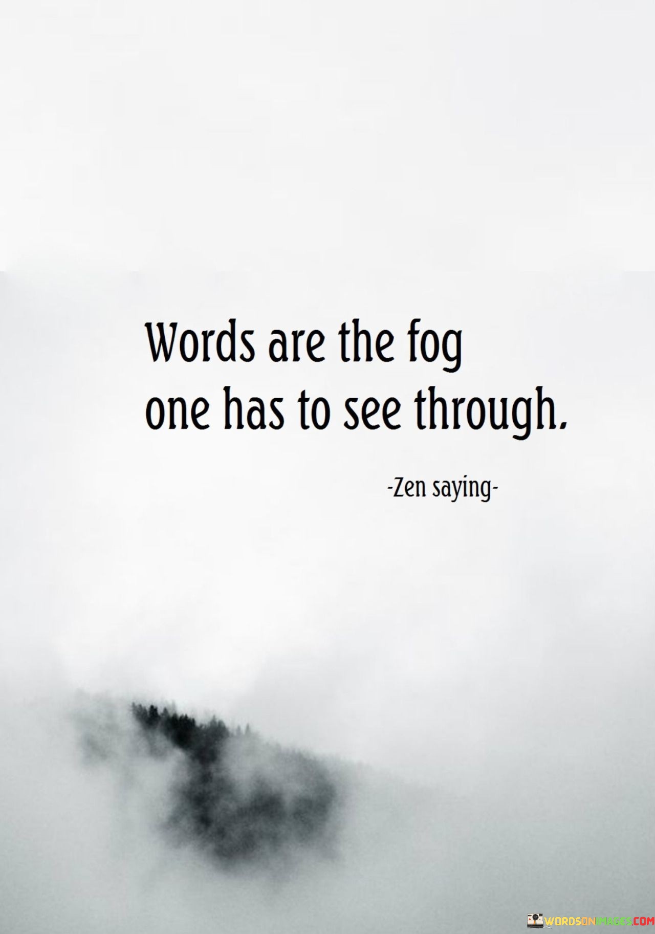 Ultimately, the quote promotes active engagement in communication. It conveys that understanding requires active interpretation beyond surface-level words. By likening words to fog, it underscores the need to attentively navigate language to uncover the true meanings behind what is being expressed.