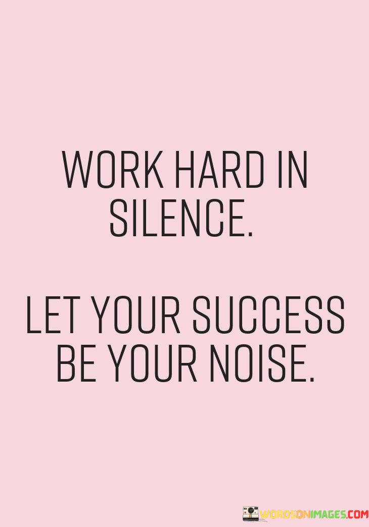 In essence, the quote promotes a mindset of dedication and modesty. It encourages individuals to prioritize consistent hard work over seeking external recognition. By channeling their energy into meaningful work and allowing their achievements to shine, individuals can achieve a level of success that speaks volumes without the need for boastful announcements.