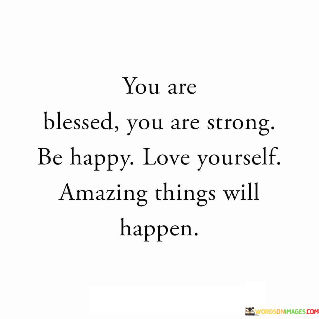 This quote offers a series of affirmations to inspire self-confidence and positivity. It highlights the importance of recognizing one's blessings, inner strength, and potential for happiness. By acknowledging these qualities, individuals are encouraged to embrace a mindset that fosters personal growth and fulfillment.