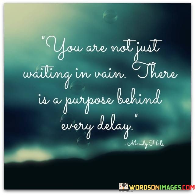 Imagine waiting in the rain for something you really want, like a special event or a friend. This quote tells us that even though waiting might feel frustrating, there's a reason for it. It's like the universe has a plan, and the delay is there for a purpose.