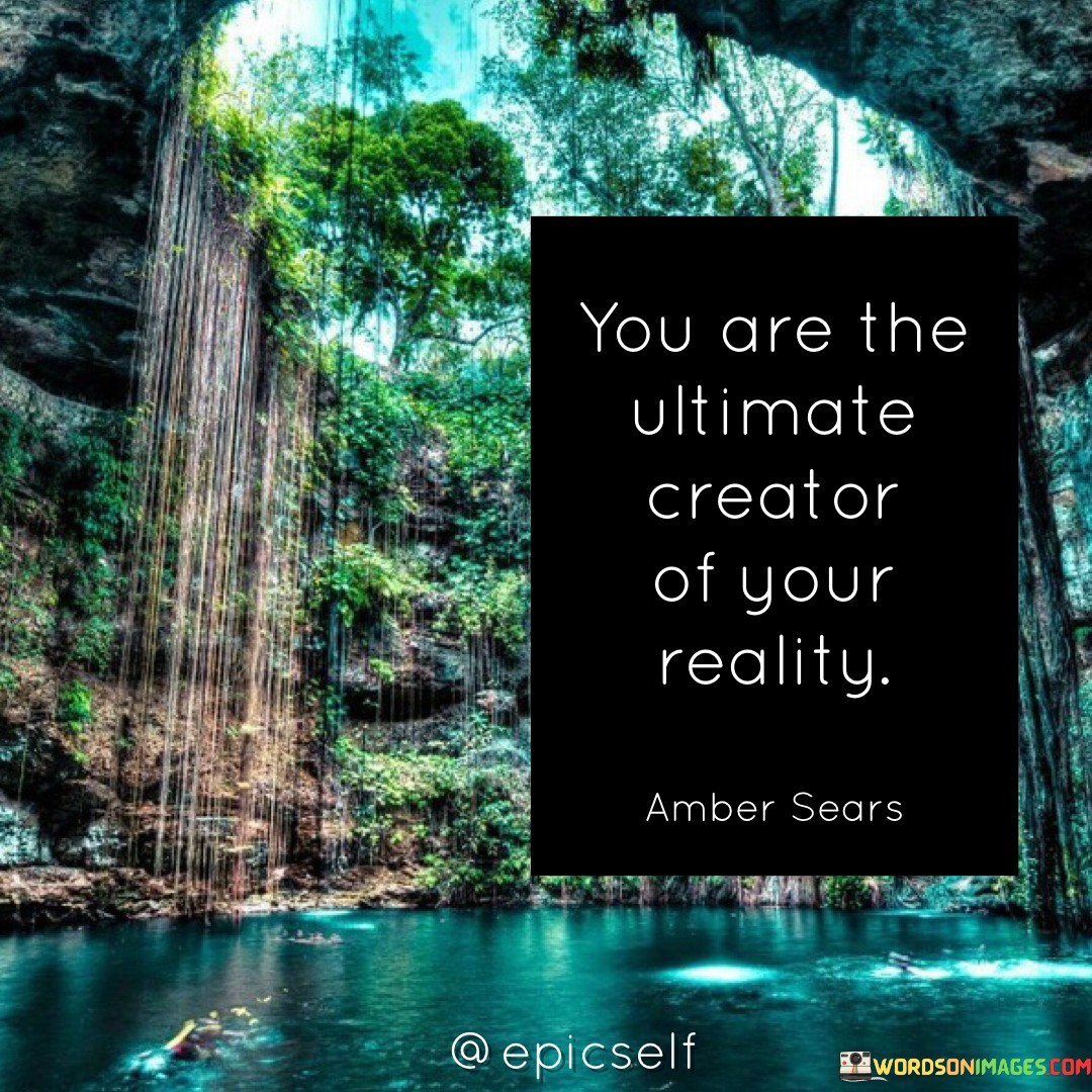 The quote "you are the ultimate creator of your reality" asserts your pivotal role in shaping your life's circumstances. It emphasizes your power to mold experiences through thoughts, choices, and actions. Your beliefs and intentions guide the path you tread, illustrating the profound influence of your mindset in manifesting the world you perceive.