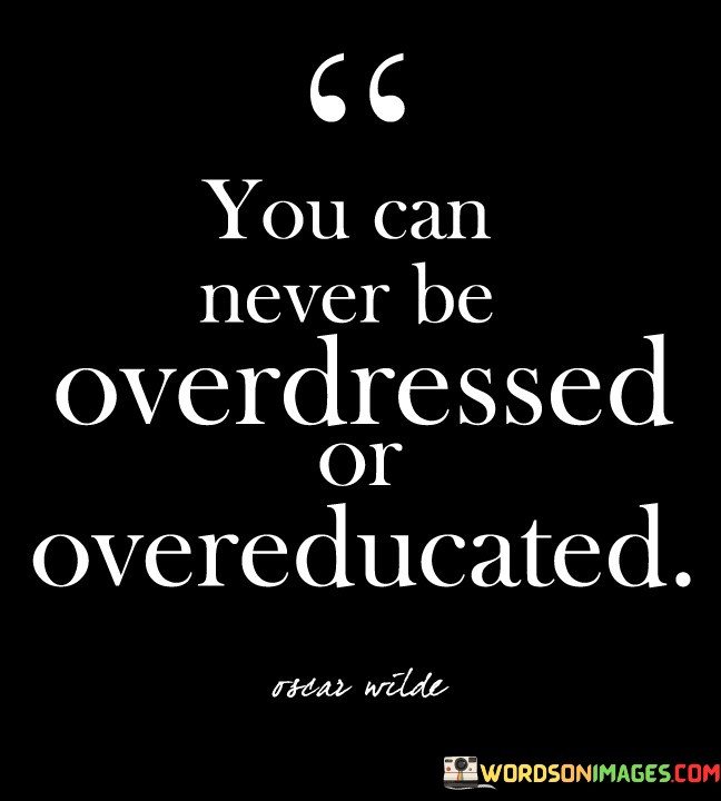 This quote emphasizes the value of dressing well and seeking knowledge. It suggests that there's no such thing as being too well-dressed or too educated. In essence, it encourages individuals to always strive for their best and never shy away from presenting themselves in a polished manner.