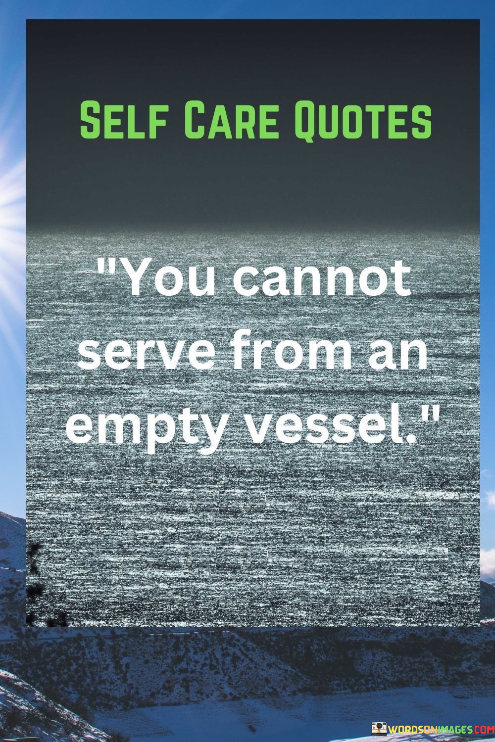 Self-care empowers service. The quote conveys that taking care of oneself is crucial for effectively helping others. It emphasizes that if your own well-being is neglected, you won't have the resources or energy to support others wholeheartedly.