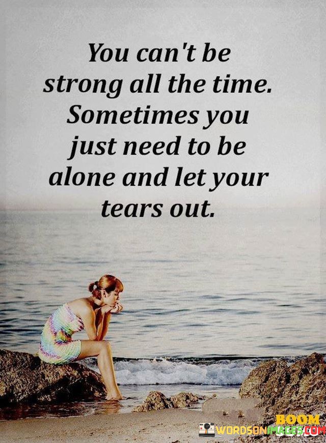The quote acknowledges the vulnerability inherent in being human. "Can't be strong all the time" recognizes the limitations of emotional resilience. "Need to be alone" suggests solitude for introspection. The quote conveys the importance of embracing vulnerability and allowing oneself to experience and express emotions.