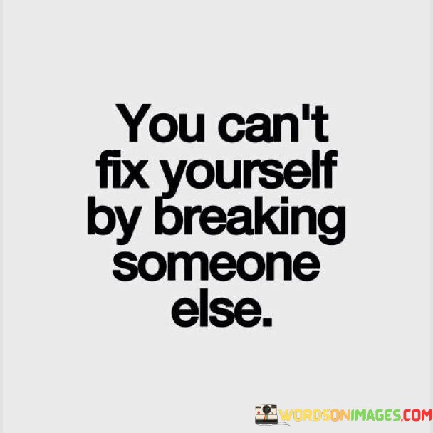 The quote underscores the principle of positive change. It implies that inflicting harm on others perpetuates negativity. By alluding to the idea of "fixing" oneself, it conveys the importance of addressing personal issues through healthier means that don't involve causing harm to others.