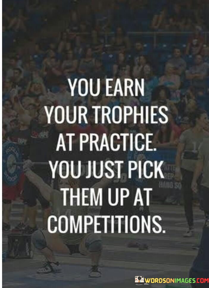 In the second paragraph, the quote's essence becomes clearer. "You Just Pick Them Up at Competitions" suggests that competitions are merely opportunities to showcase the hard work already invested. It implies that the real work is done in the background, and competitions serve as platforms to demonstrate the mastery achieved through practice.