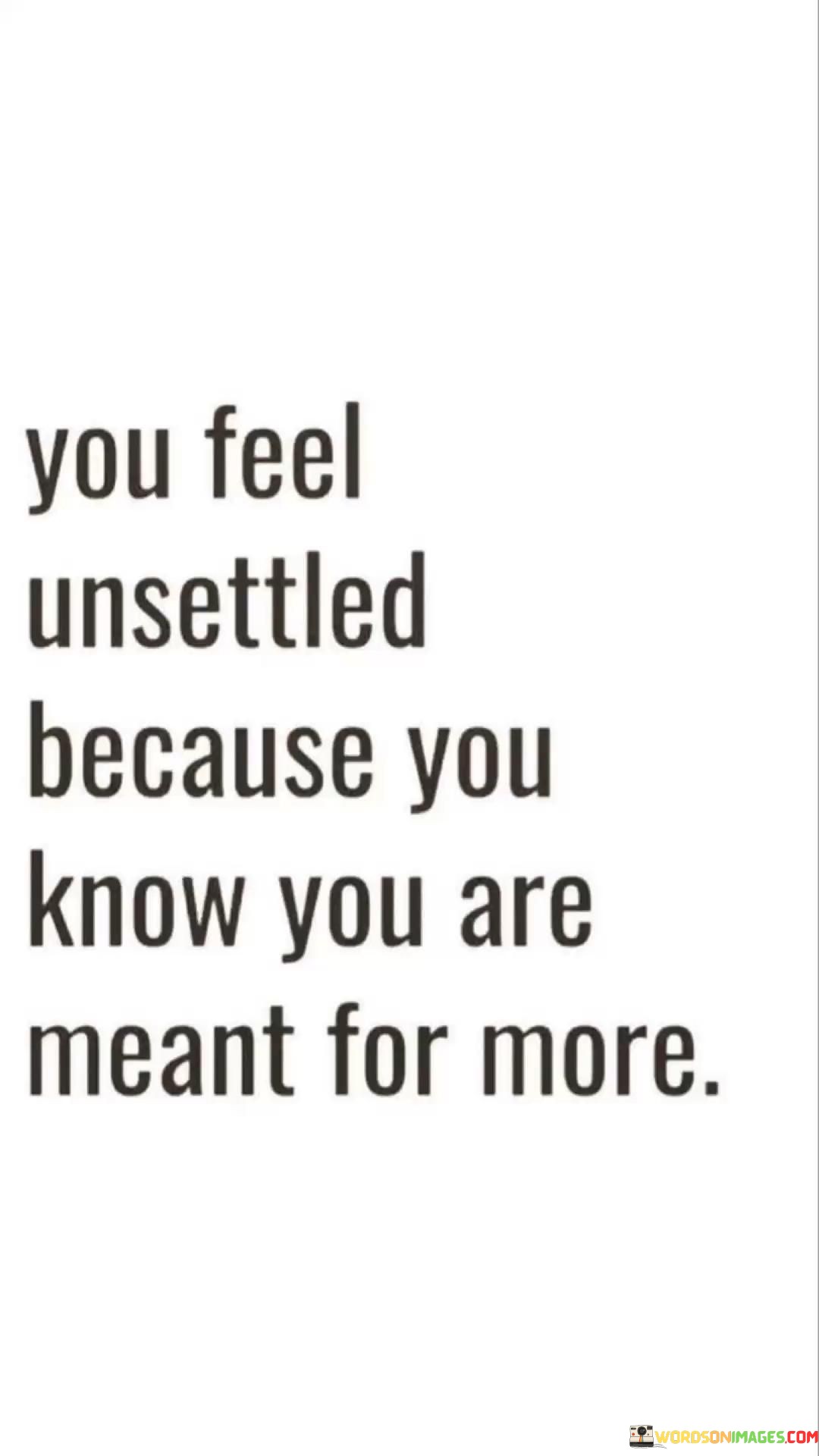 The quote encourages self-awareness and introspection, urging individuals to acknowledge their inner yearnings for growth and fulfillment. It implies that the discomfort they feel is a sign of their innate potential and desire to pursue something greater in life.