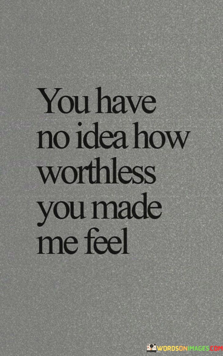The quote expresses the impact of another person's actions on the speaker's self-worth. "Worthless you made me feel" signifies deep emotional damage. The quote conveys the profound negative influence of someone's behavior on the speaker's self-esteem.