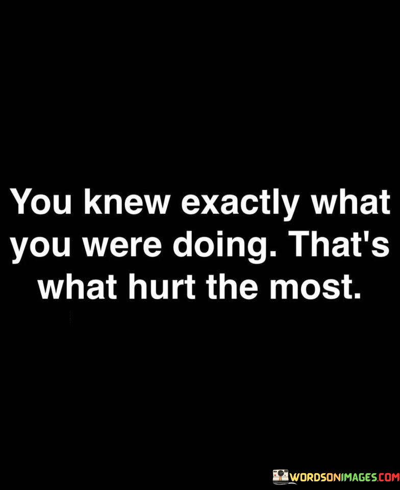 The quote addresses intentionality and pain. "Know exactly what you were doing" implies awareness. "Hurt the most" signifies emotional impact. The quote conveys the emotional distress caused by recognizing deliberate actions that led to hurt.