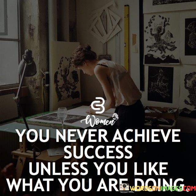 Ultimately, the quote encourages individuals to align their pursuits with their interests and passions. It suggests that by finding joy in what they do, they increase their chances of attaining meaningful success, both personally and professionally.