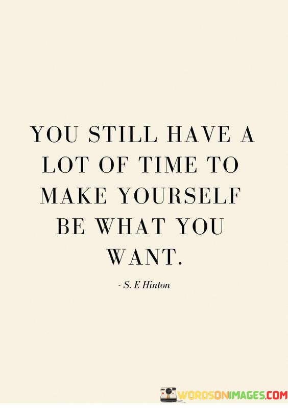Paragraph 1: The quote underscores the idea that there is ample time available for personal growth and transformation. It encourages embracing the present moment to shape oneself into the desired version. This perspective emphasizes the potential for change and development, inspiring individuals to work towards their aspirations.