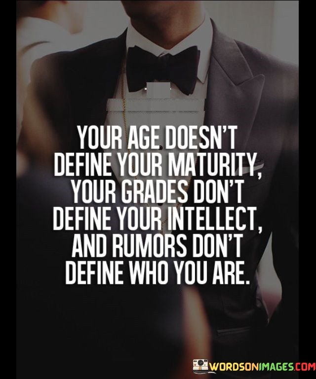 "Your age doesn't define your maturity, your grades don't define your intellect, and rumors don't define who you are."