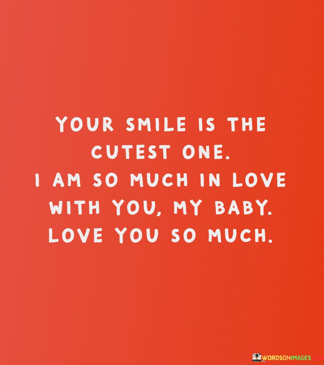 The quote conveys a tender and affectionate sentiment. "Your smile is the cutest one; I am so much in love with you, my baby. Love you so much" expresses adoration and deep feelings of affection toward the person.