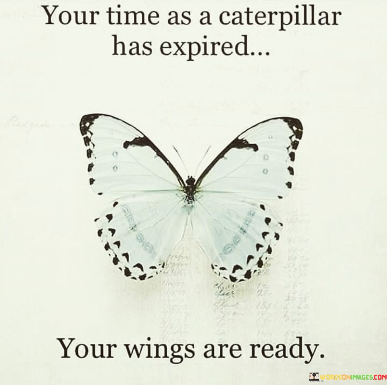 In the quote serves as a symbol of embracing transformation and stepping into one's potential. It encourages individuals to recognize their growth and embrace new opportunities. By adopting this perspective, one can navigate life with a sense of confidence and embrace the changes that lead to personal empowerment and fulfillment.