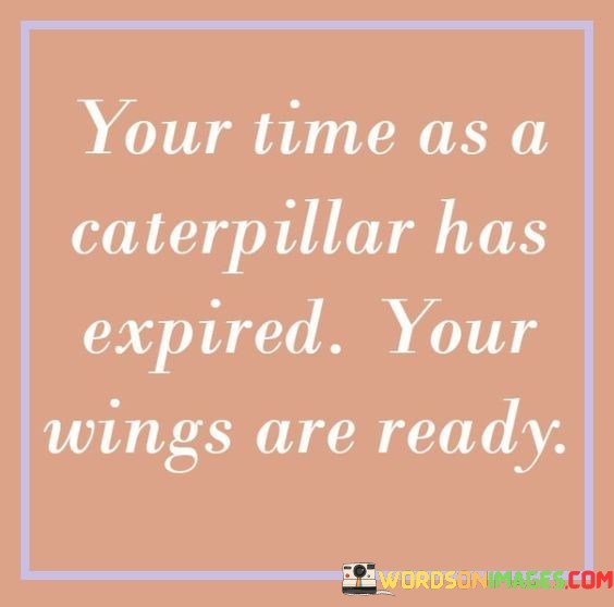 In essence, it encapsulates evolution and empowerment. "Your Time As A Caterpillar Has Expired, Your Wings Are Ready" motivates embracing growth, shedding limitations, and confidently embracing new beginnings.
