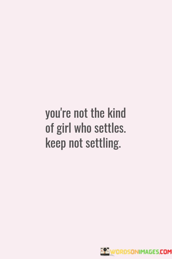 "You're Not The Kind Of Girl Who Settles" means that you're not the type of person who accepts less than what you truly deserve. It's like saying you have high standards and won't compromise for something that doesn't make you truly happy.