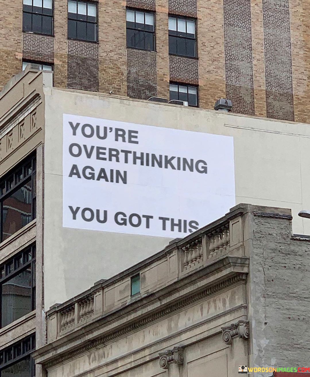 Overthinking can be like a mental roadblock. It's when you spend too much time worrying about what might go wrong or analyzing things too deeply. This quote nudges you to trust in yourself and your abilities. It's like a boost of confidence, saying, "You can do it; don't let overthinking hold you back."