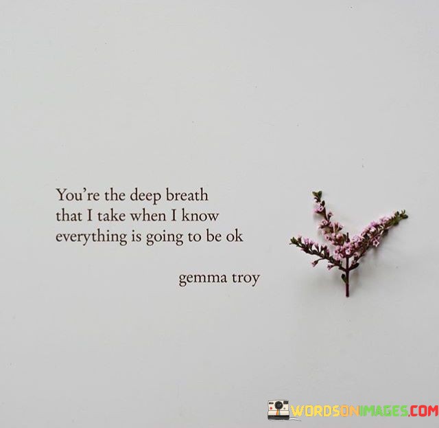 This statement beautifully expresses the calming and reassuring presence of someone in the speaker's life. It suggests that when they face moments of uncertainty or stress, thinking of this person or being with them is like taking a deep breath, a source of comfort and reassurance.